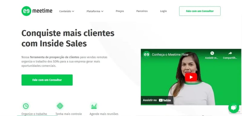 A Meetime é uma empresa que oferece conteúdo e software para profissionais de inside sales. Eles trabalham com três pilares fundamentais: