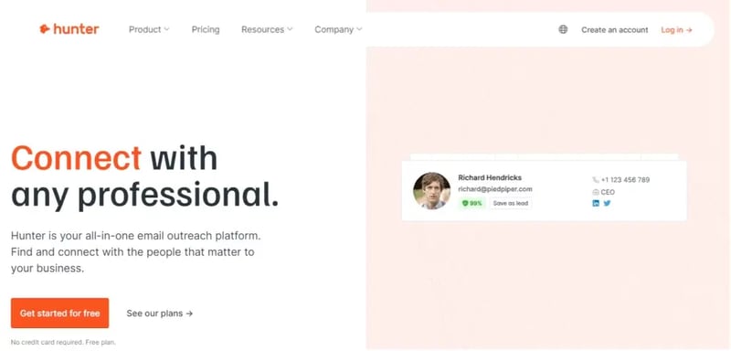Além disso, o Hunter oferece uma versão gratuita, permitindo que você capture até 100 contatos por mês sem nenhum custo.