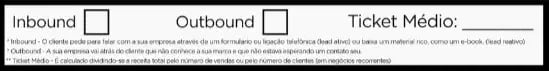 1. Canais de aquisição: nessa parte, você preenche o ticket médio do cliente e determina qual será o canal de aquisição utilizado: inbound ou outbound;